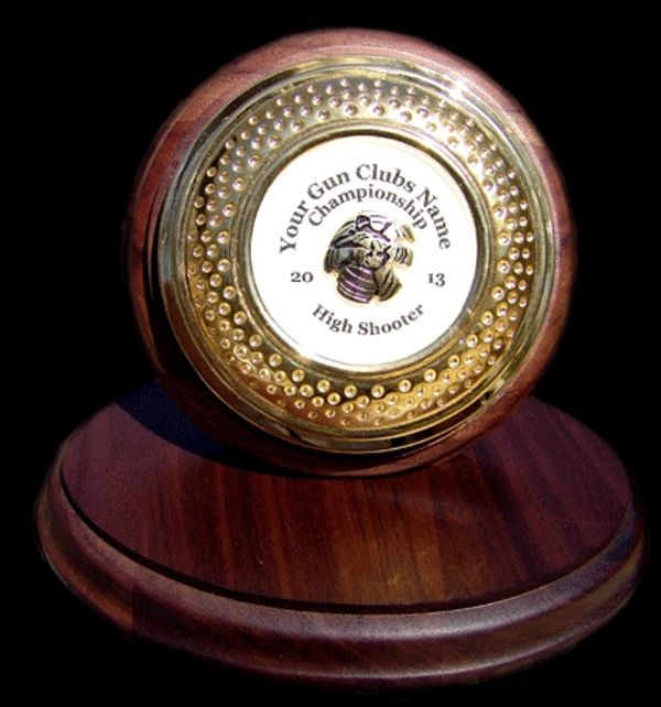 Clay target trophy sits on display stand 75.00
