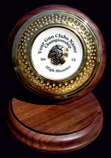 Clay target trophies are mounted to a wood 3x5 slant front base 50.00